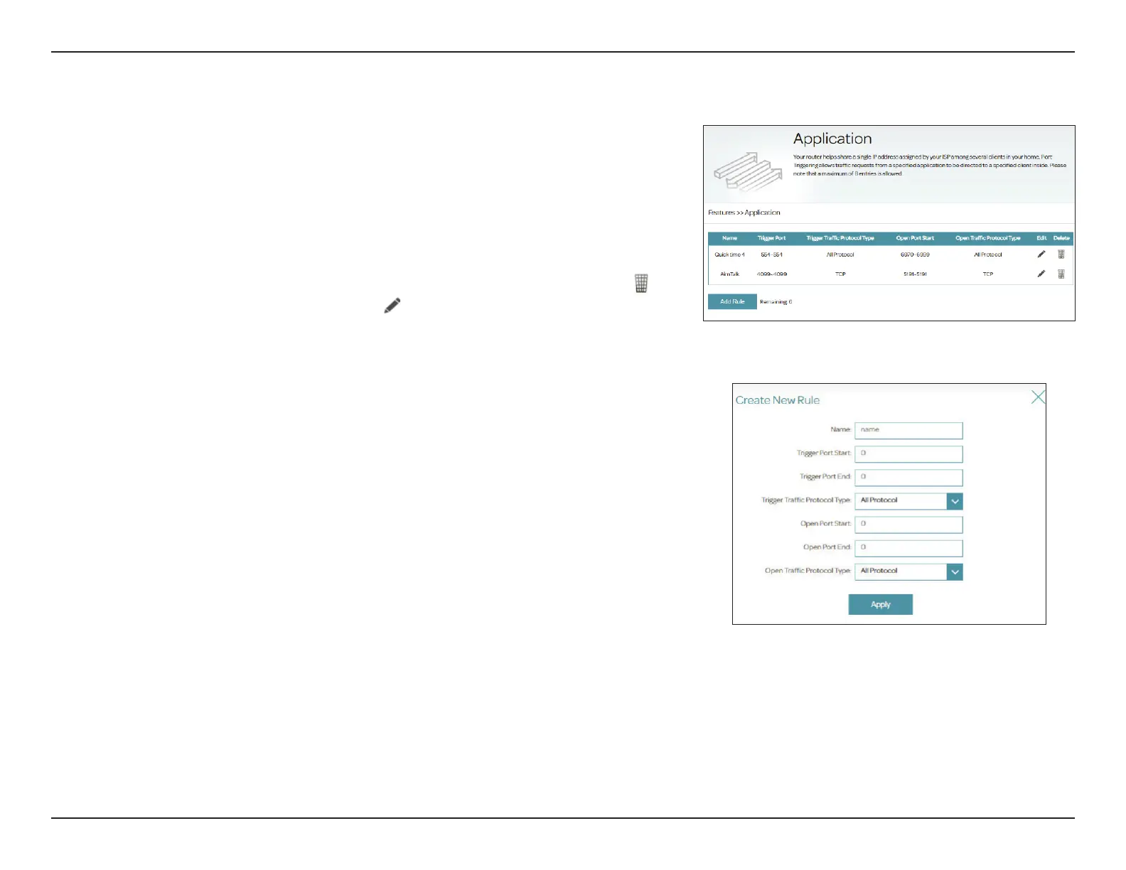 Trigger Port End: Enter the ending port range for the trac that will be forwarded.