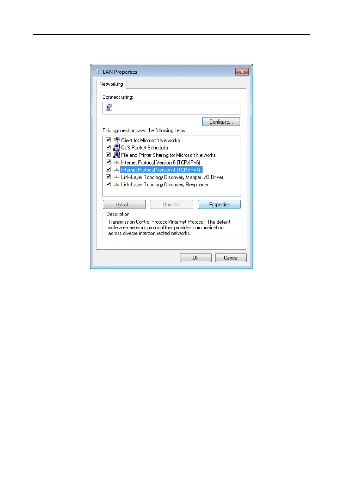 Internet Protocol Version 4 (TCP/IPv4) line. Click the Properties button.