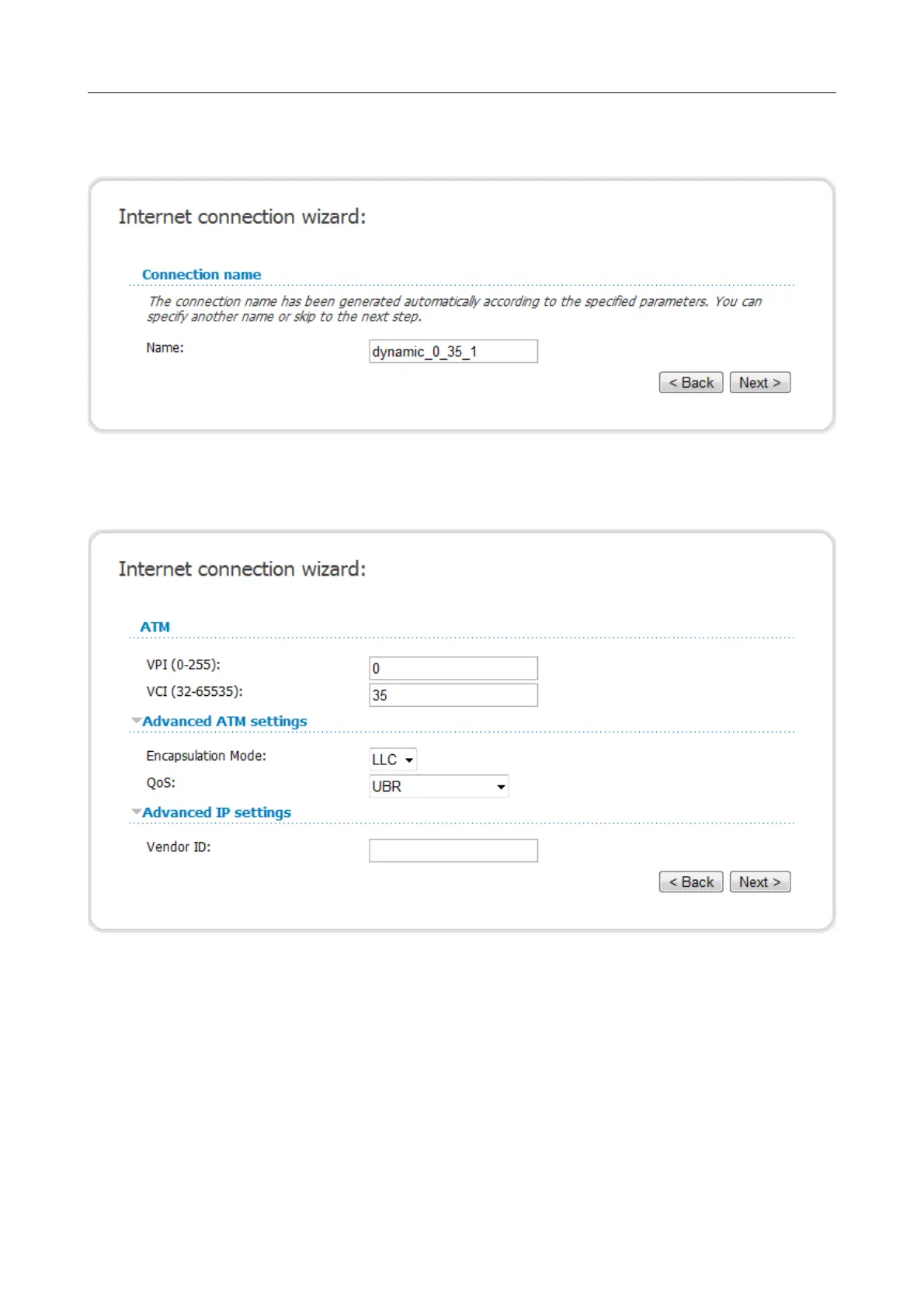 In the VPI, specify the VPI. In the VCI field, specify the VCI.