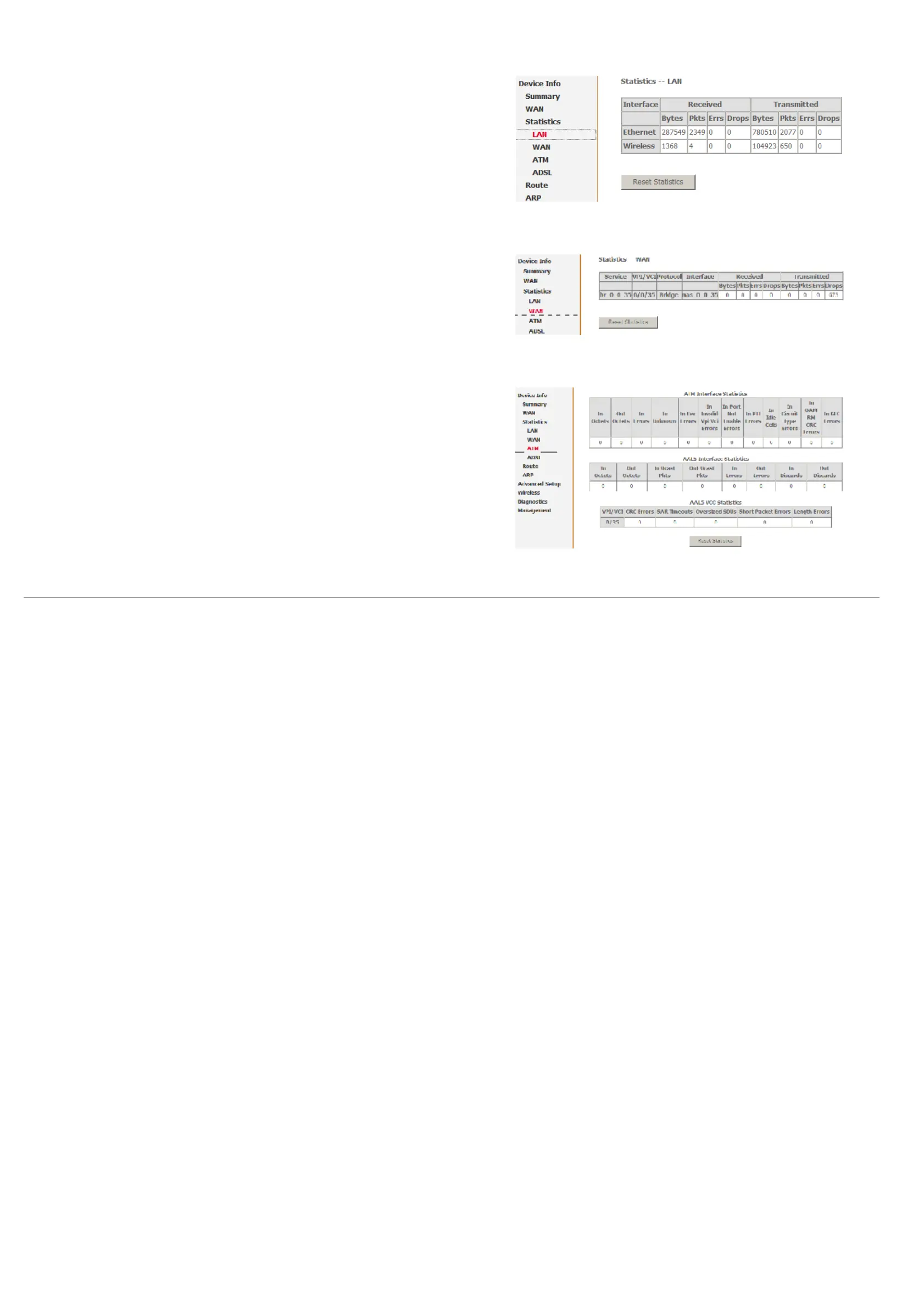 packets recevied at the Ethernet and wireless interfaces. Click Reset Statistics to restore