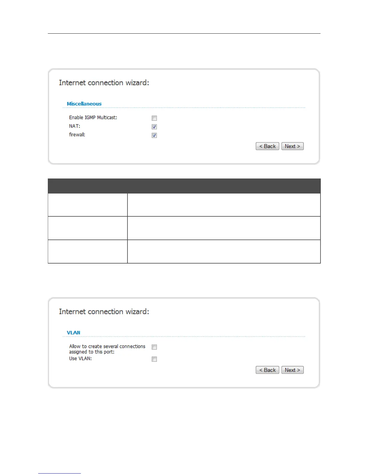 If needed, change the connection settings available in the VLAN section (the page is displayed for