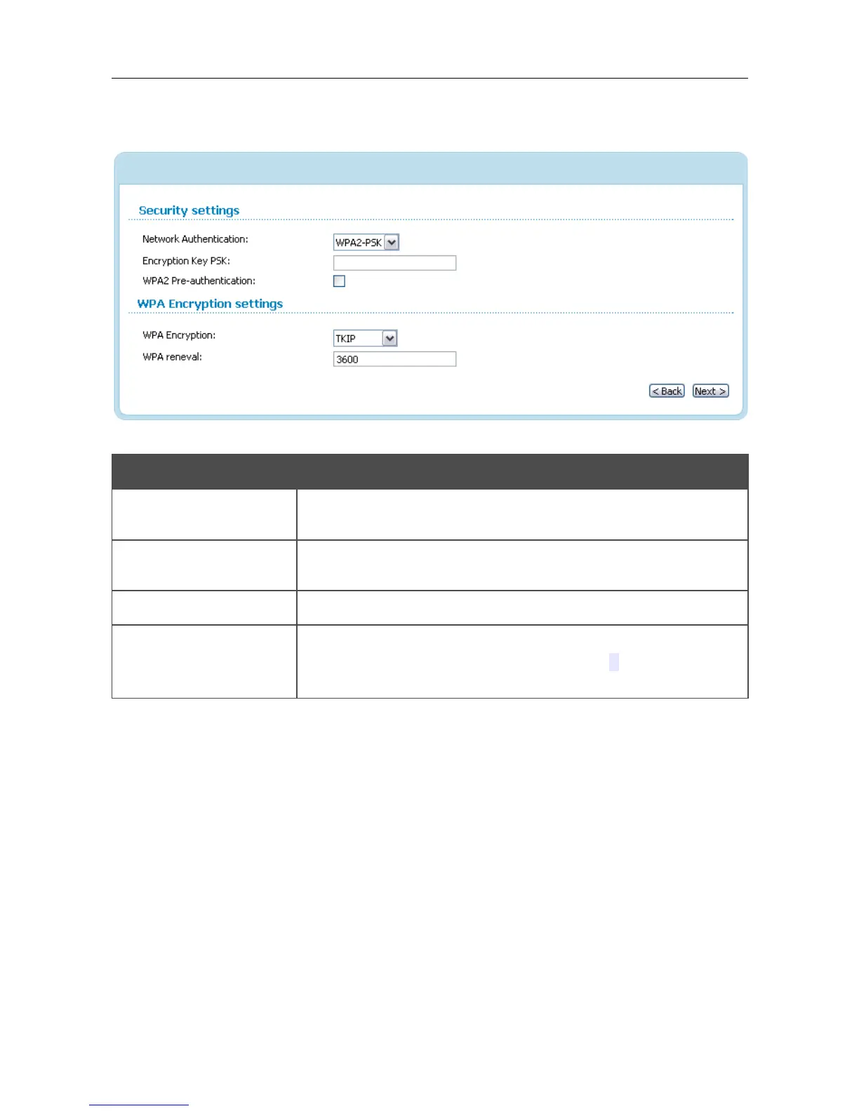 When the WPA-PSK or WPA2-PSK value is selected, the WPA Encryption settings section is