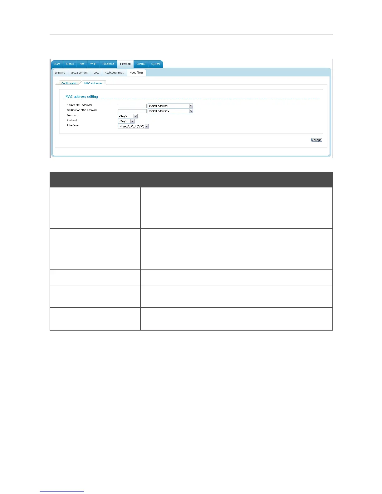 Figure 92. The page for adding a rule for MAC-address-based filtering.