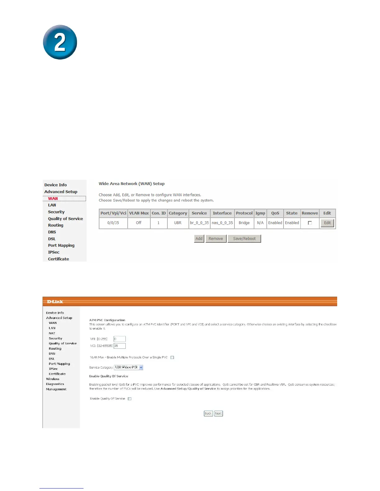 contendo algumas configurações básicas que o VPI/VCI necessita.