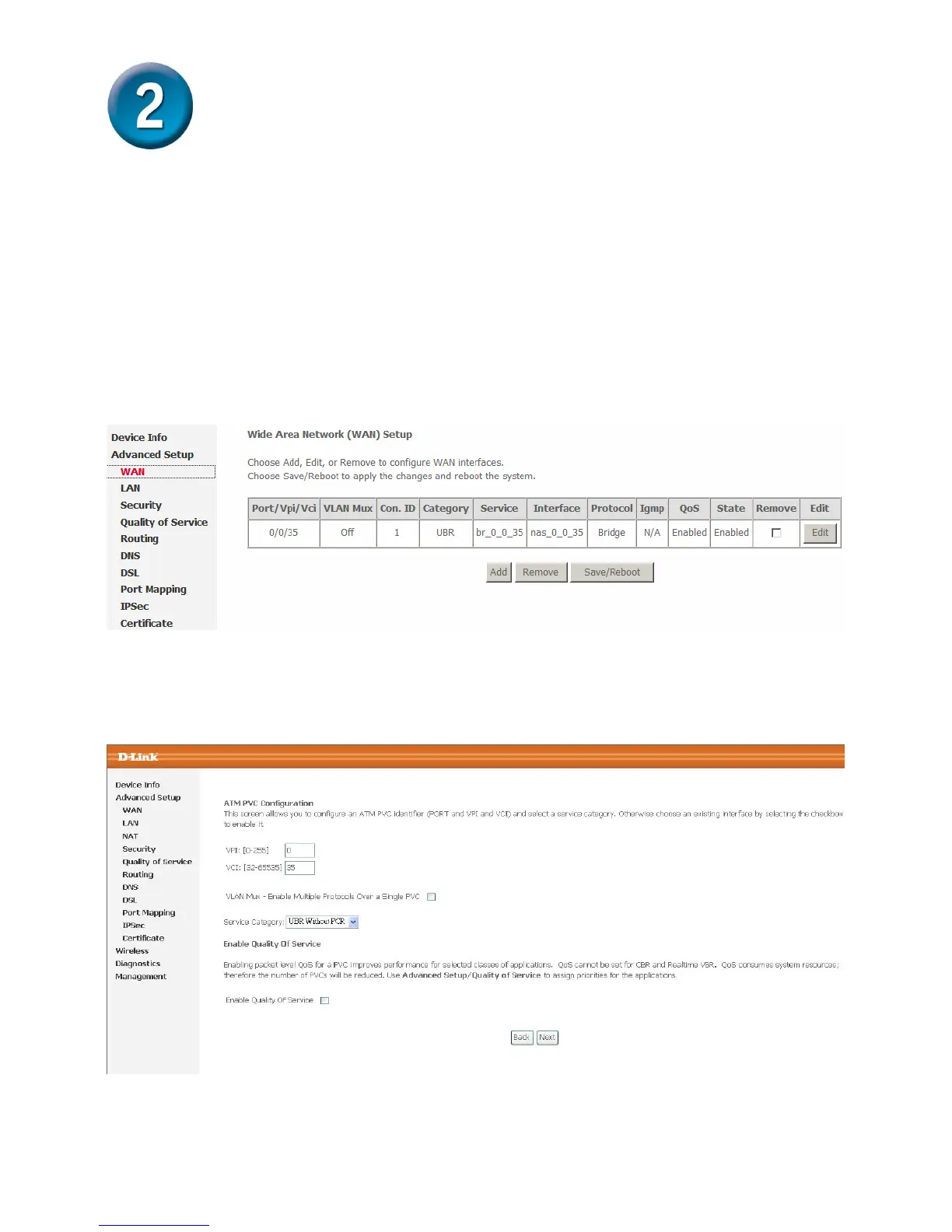 After logging in to the DSL router, if no PVC is configured previously and no default settings