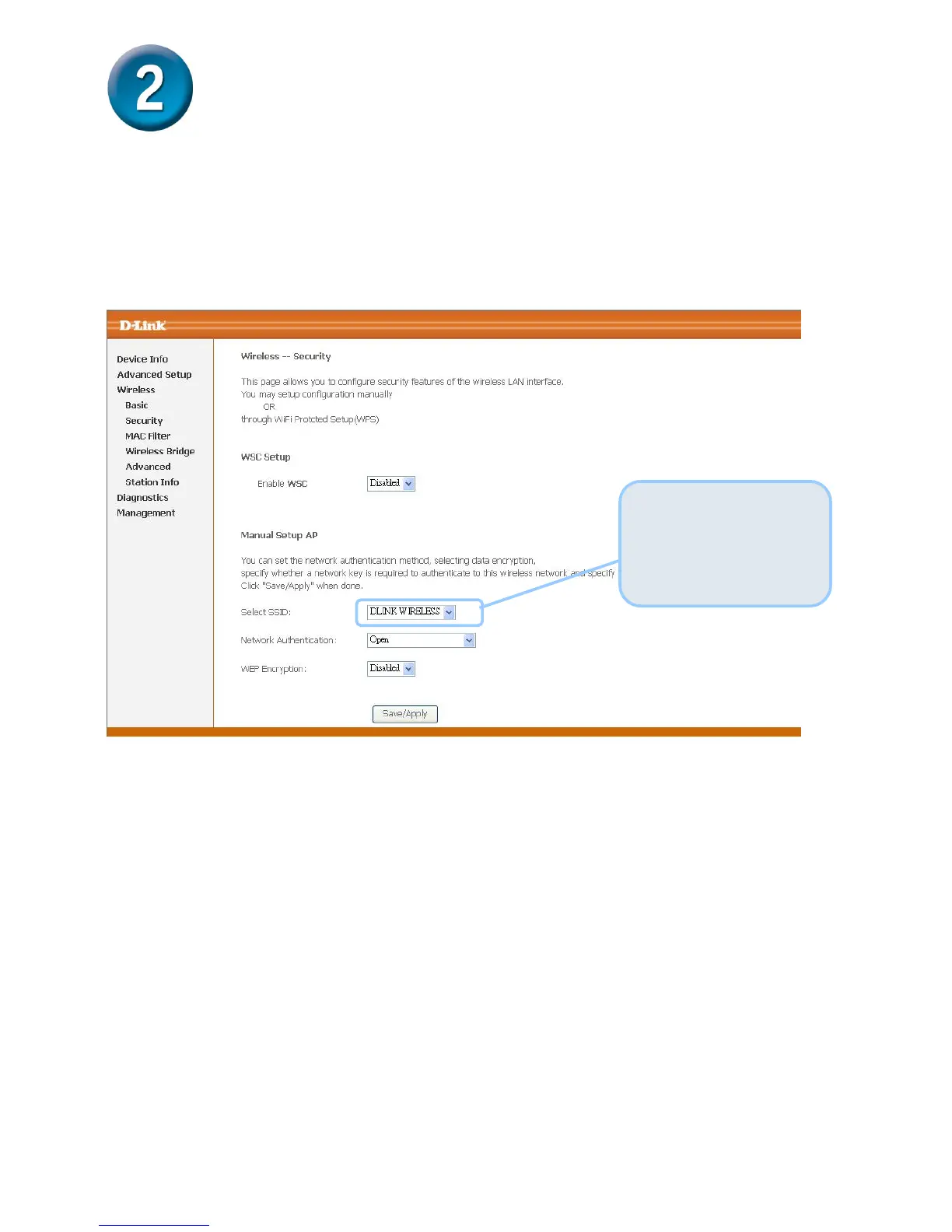Select SSID: Select the wireless LAN of SSID to configure security features.