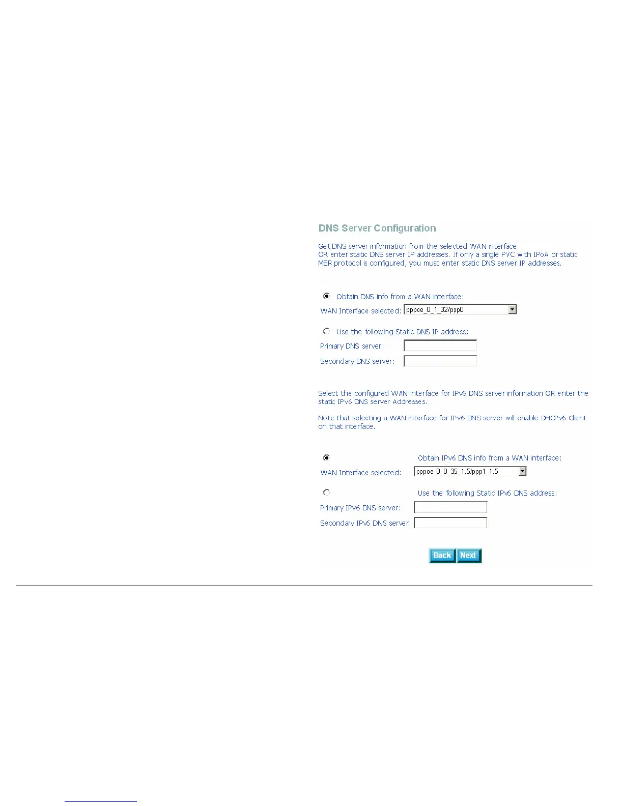 In this page, you can get DNS server information from the selected WAN interface