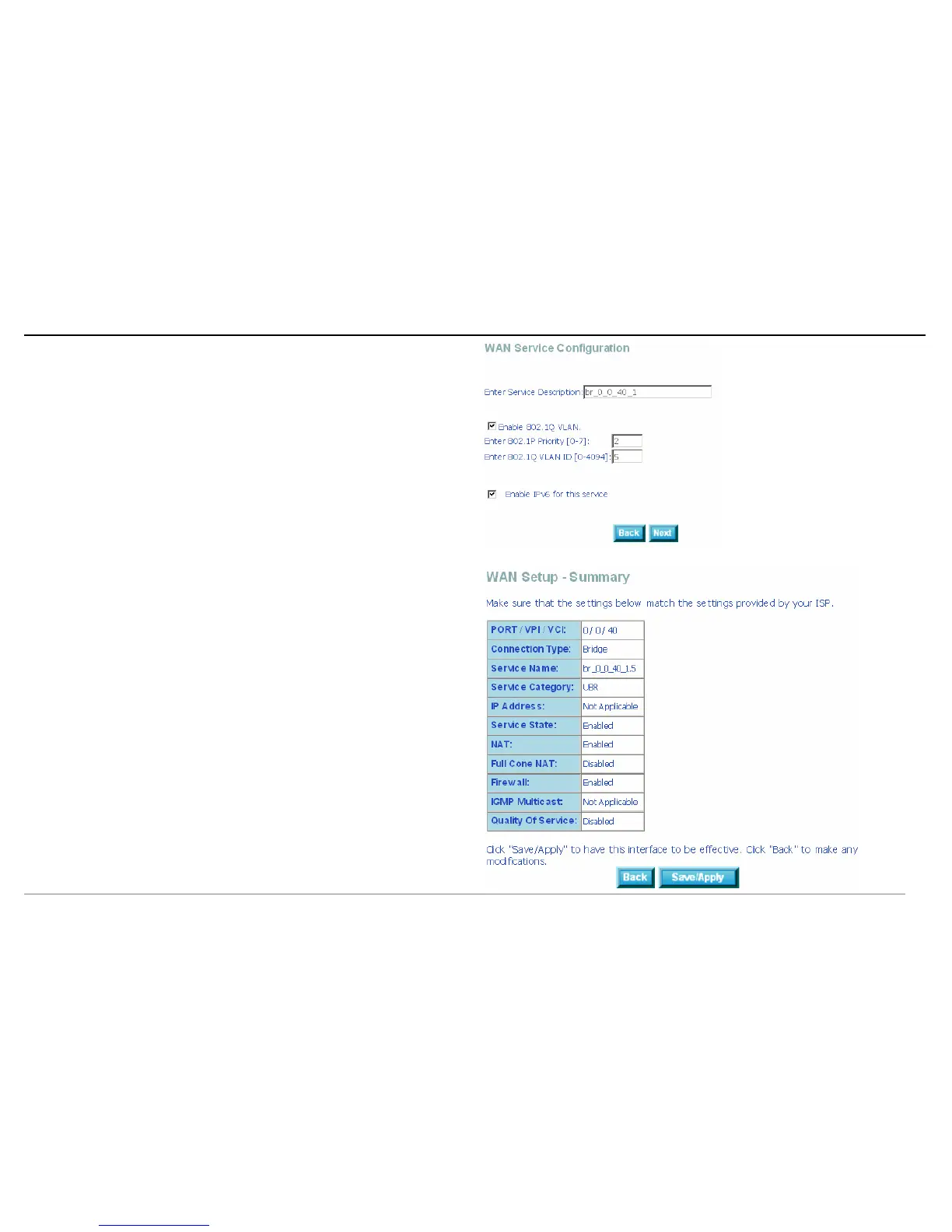 In this page, you can set the service description, enable 802.1Q VLAN and IPv6.