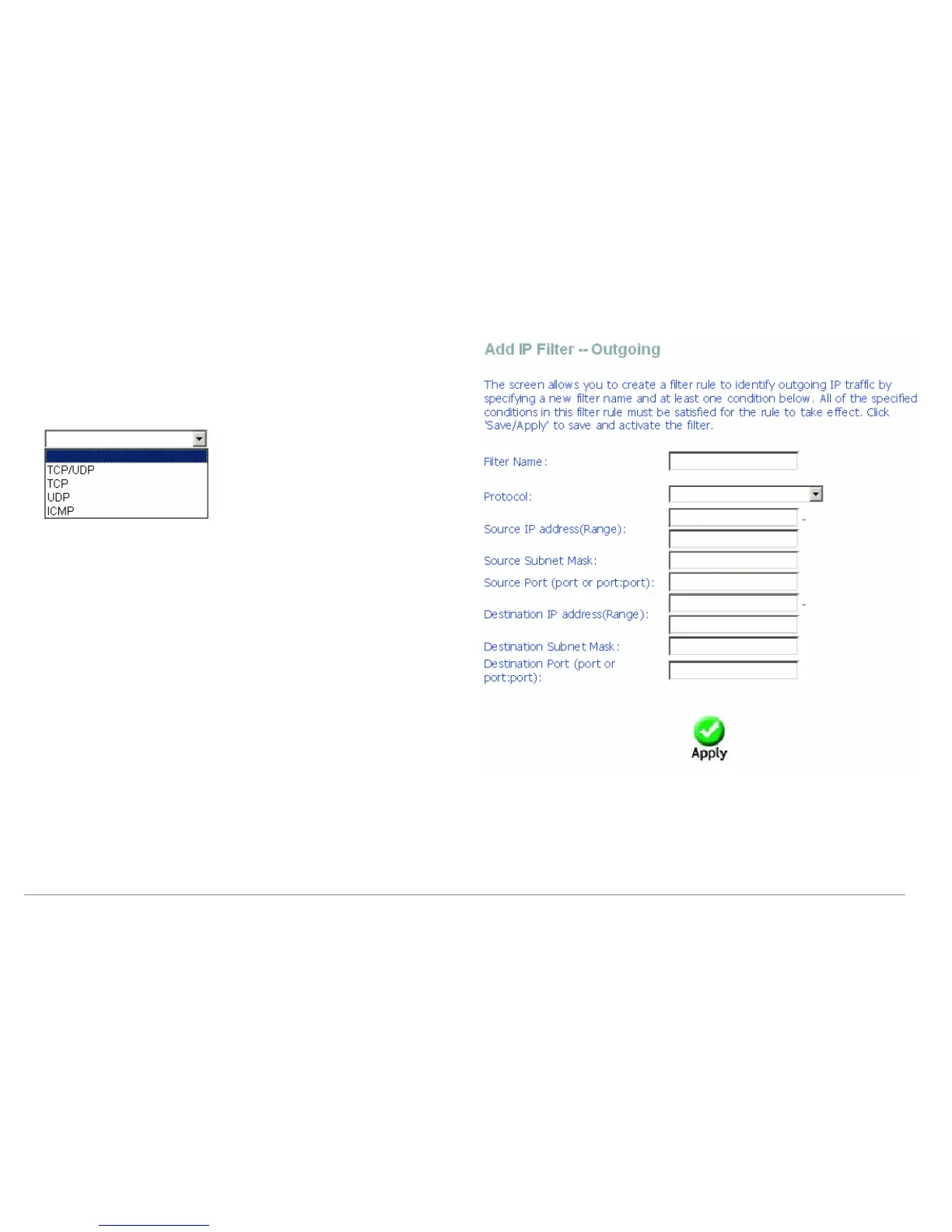 In this page, you can create a filter rule to identify outgoing IP traffic by specifying a