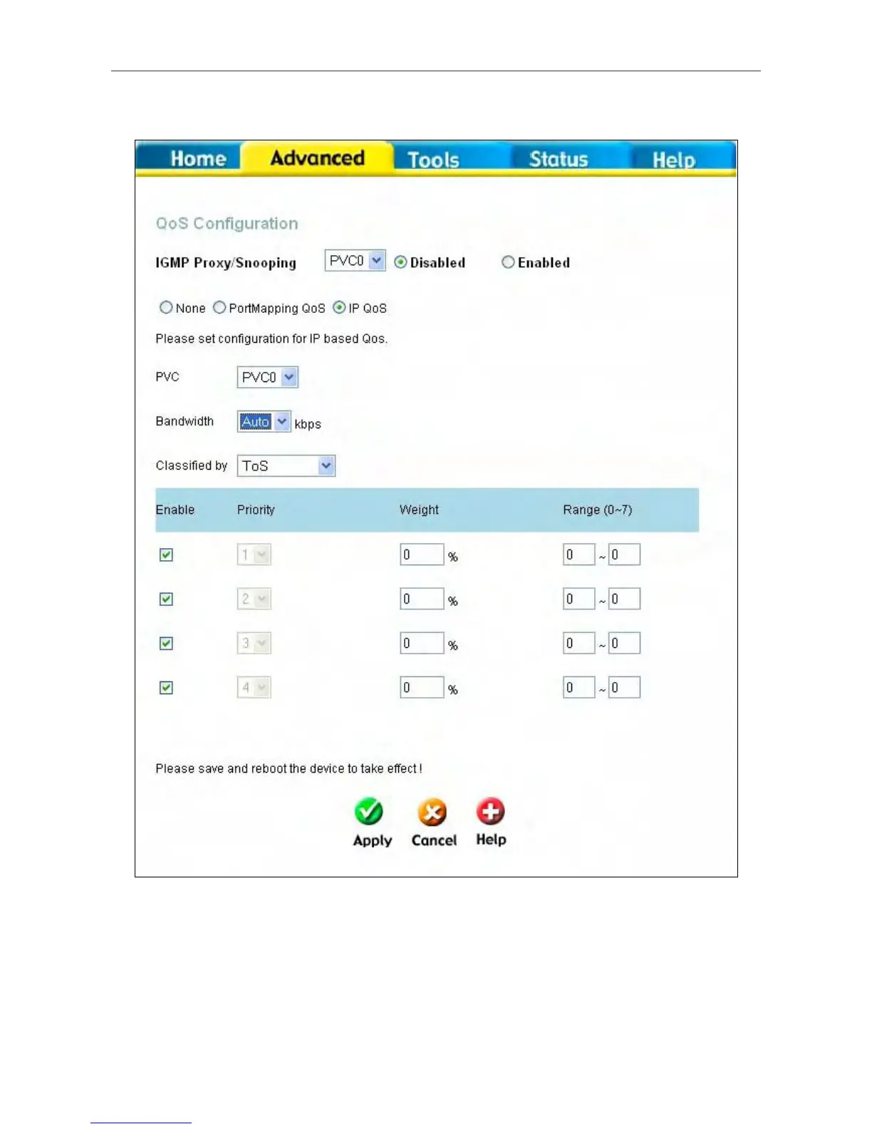 which the four priority levels are “mapped”. For example, if you assign 100% and a range of 0 to 7 to priority level 1,