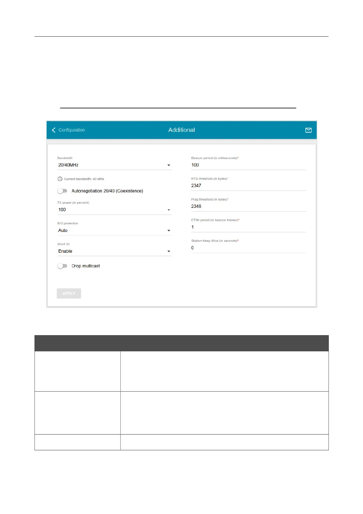 On page of the Wi-Fi / Additional section, you can define additional parameters for the WLAN of