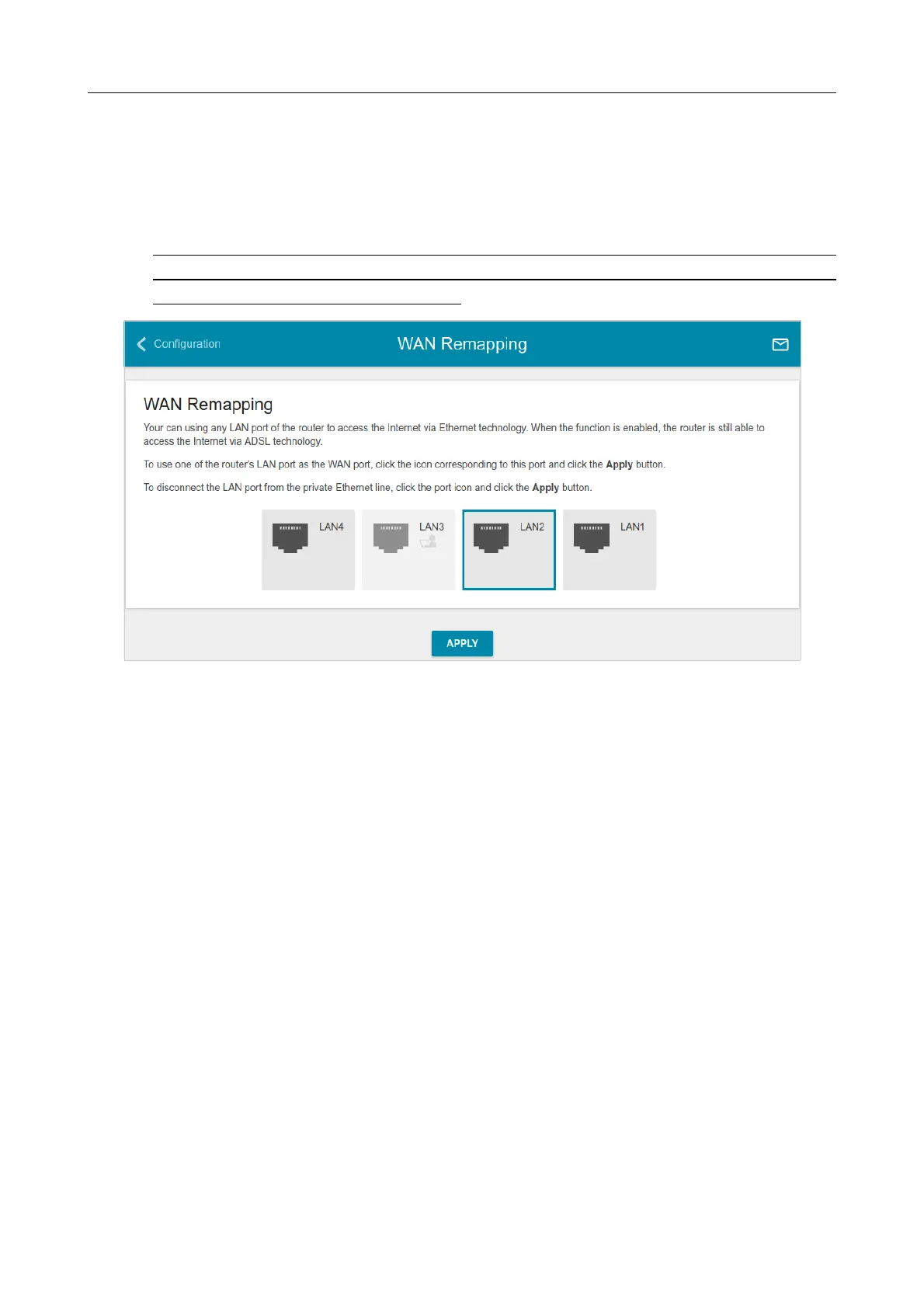 To use one of the router's LAN port as the WAN port, click the icon corresponding to this port and