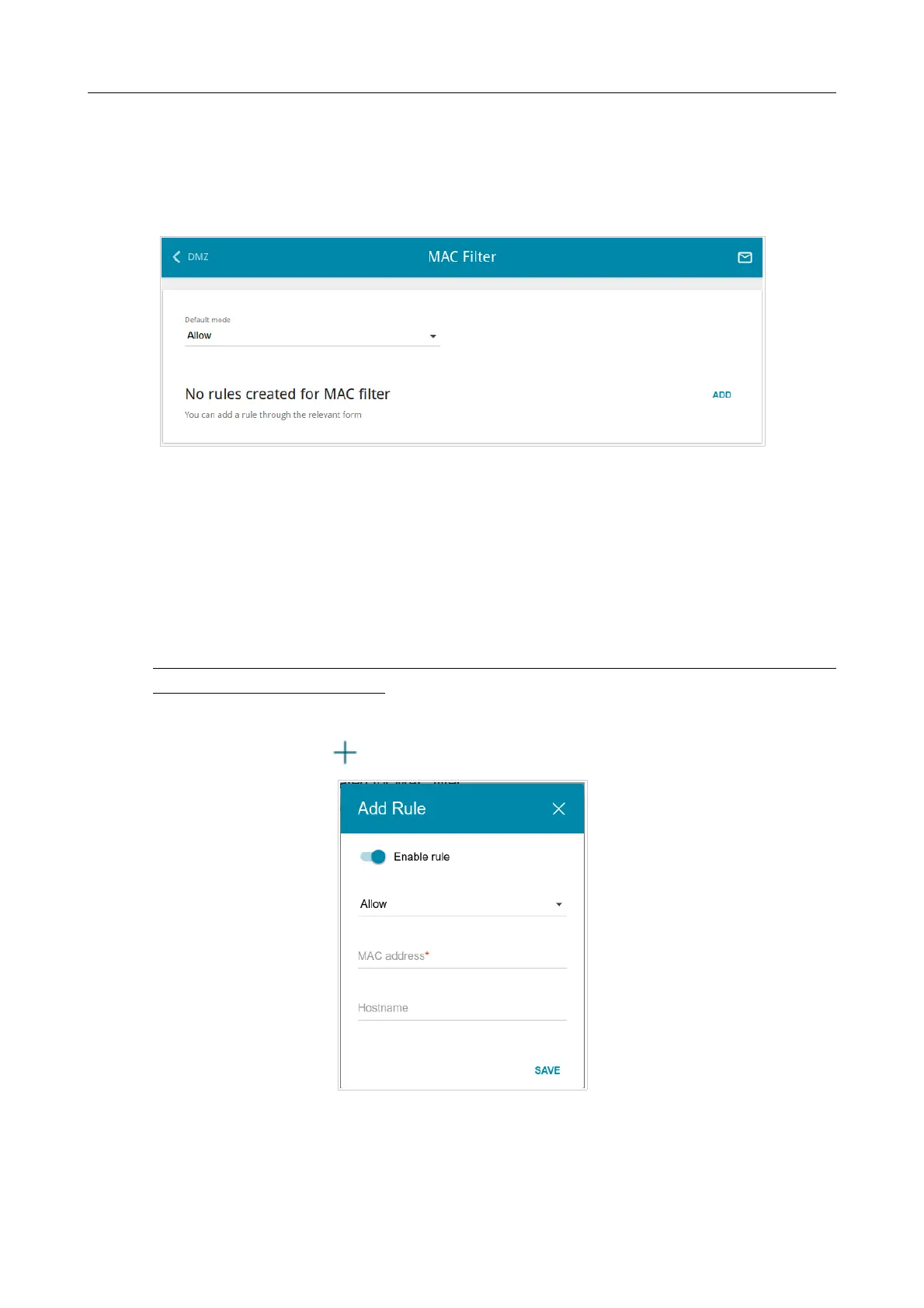 To create a rule (specify a MAC address of a device for which the specified filtering mode will be