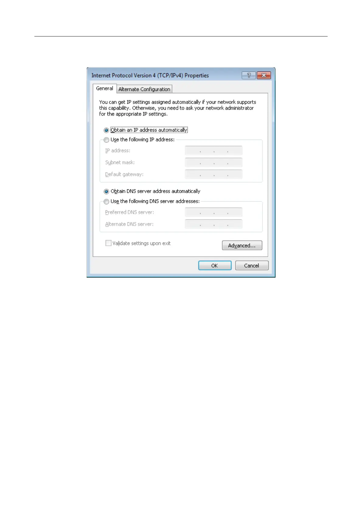 Figure 7. The Internet Protocol Version 4 (TCP/IPv4) Properties window.