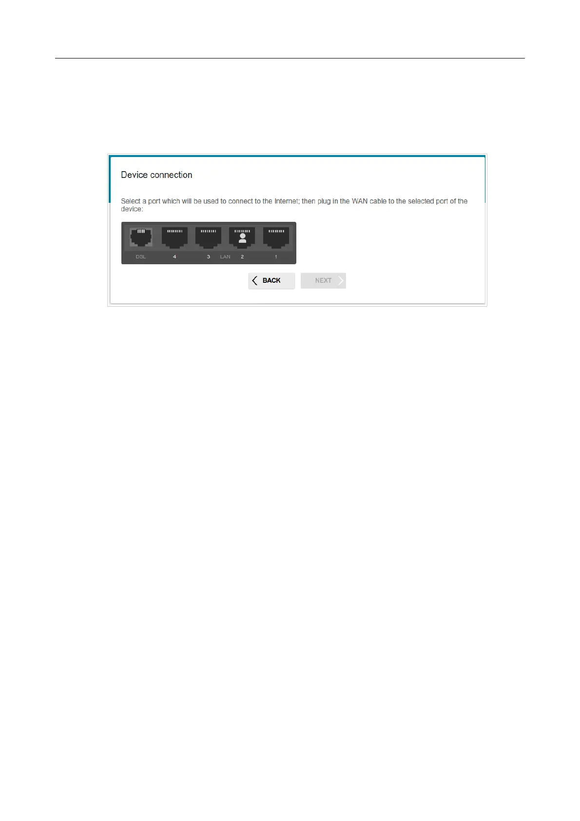 1. On the Device connection page, select a LAN port that will be used as the WAN port.