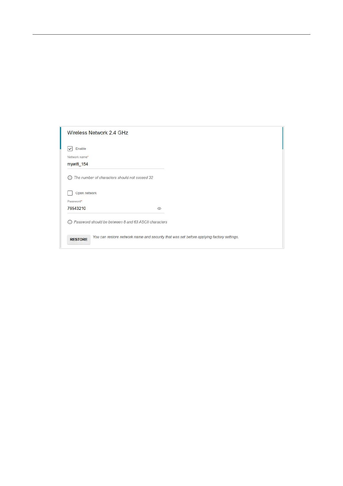 1. On the Wireless Network 2.4 GHz page, in the Network name field, specify your own