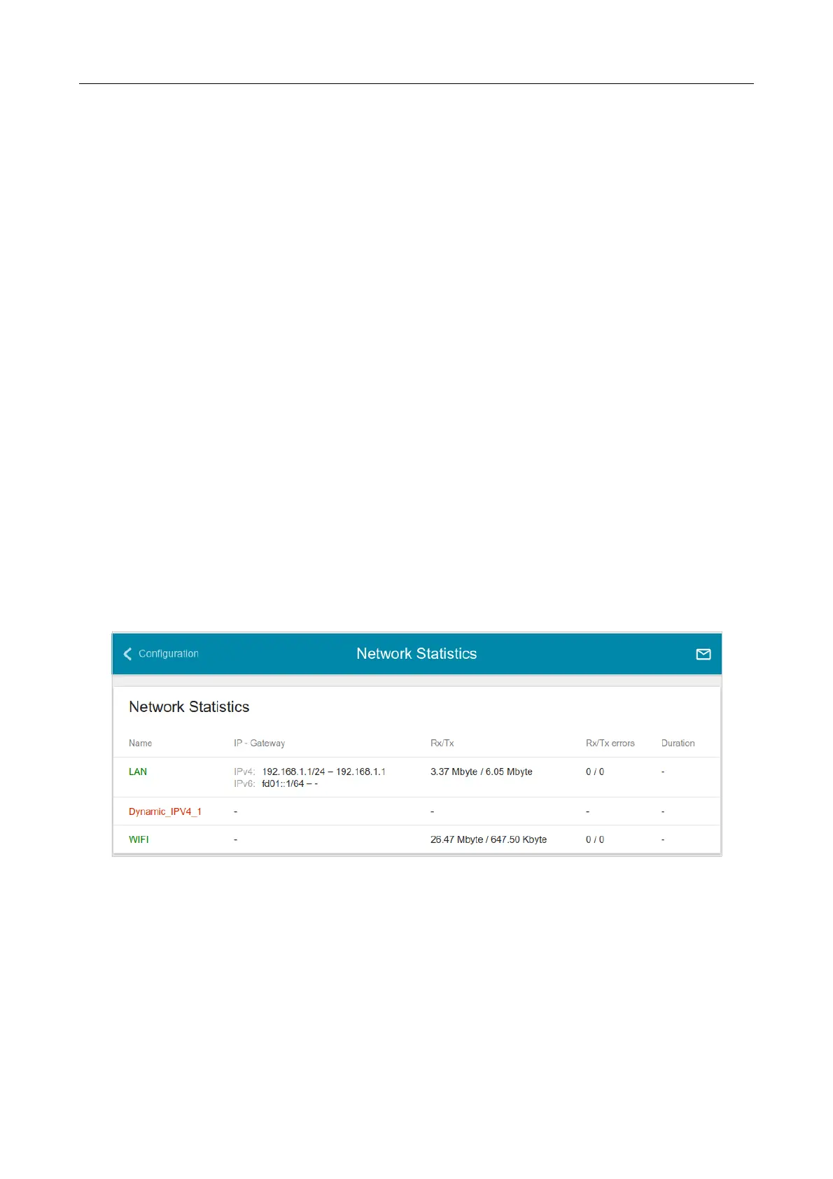 in the system (WAN connections, LAN, WLAN). For each connection the following data are