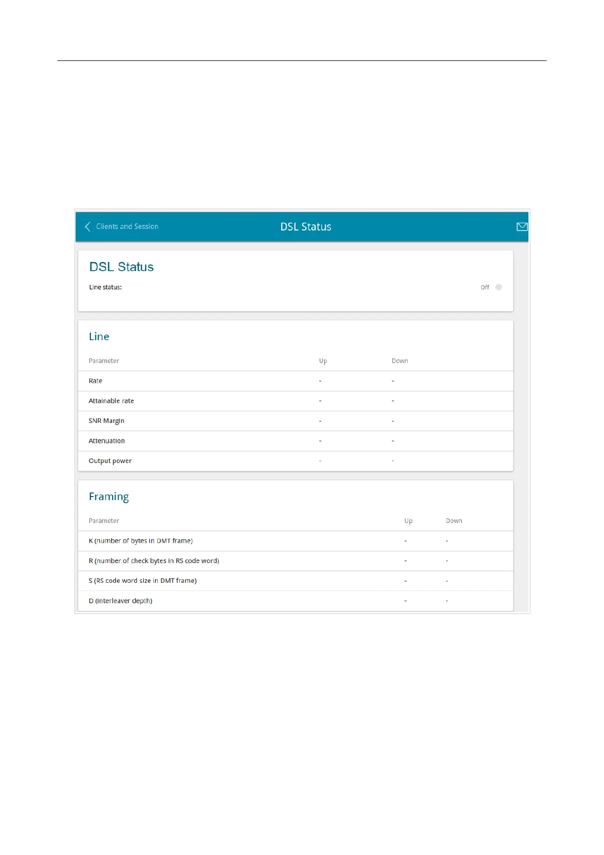 In the DSL status and Line sections you can view data on your DSL line: the line state, data