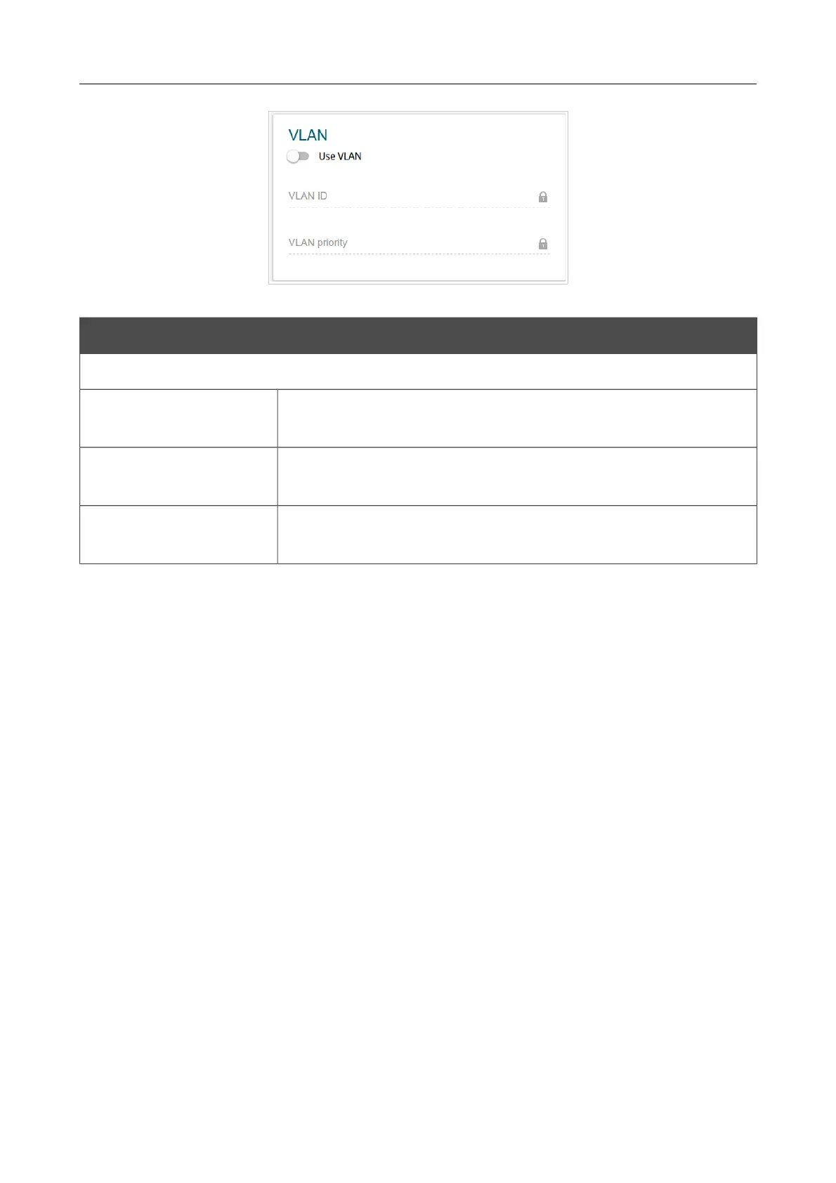 displayed when the Use VLAN switch is moved to the right.