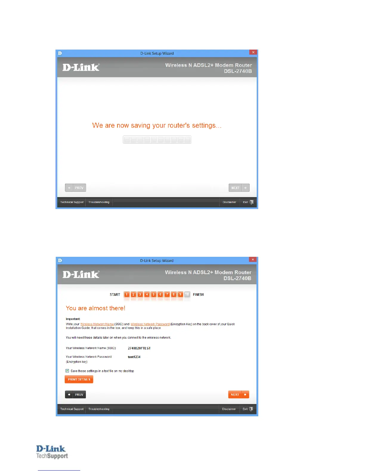 15. The wizard offers you to save the settings you have just applied to your modem onto your desktop as a text