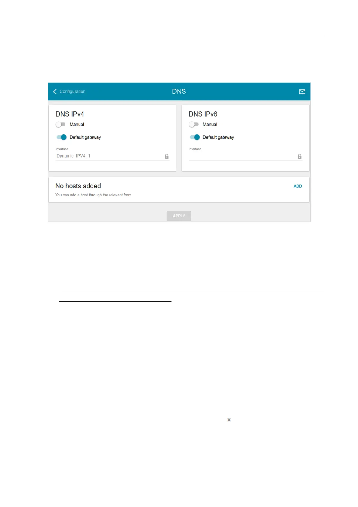 To remove a DNS server from the page, click the Delete icon ( ) in the line of the address and