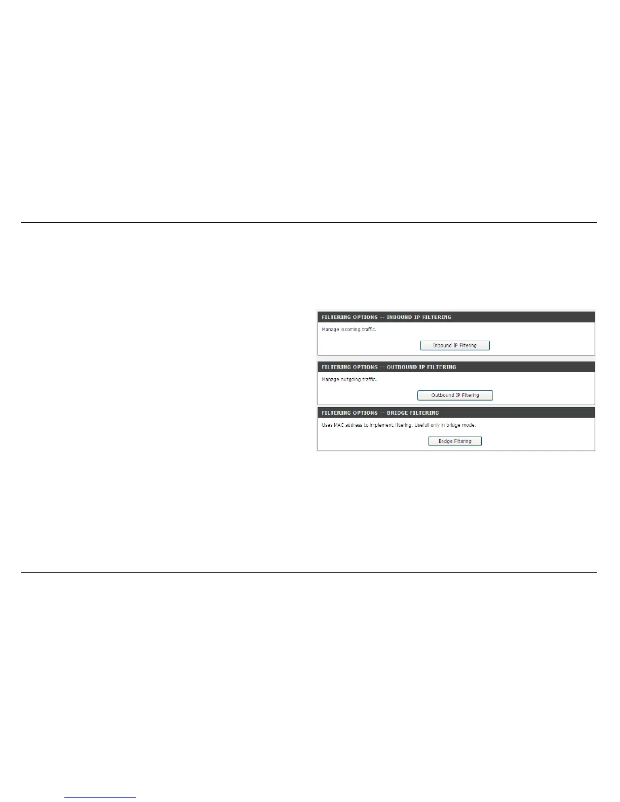 OUTBOUND IP FILTERING and BRIDGE FILTERING.