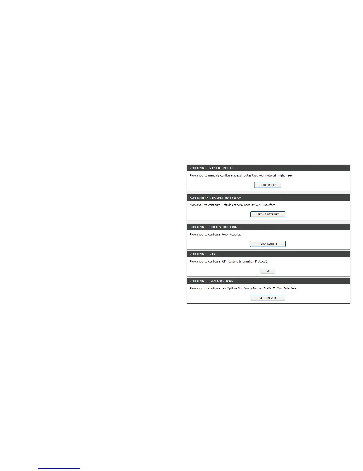 Routing Setup is divide into STATIC ROUTE, DEFAULT GATEWAY,