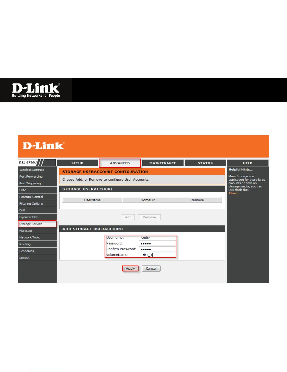 Enter a username, e.g. Andre and a password, e.g. 12345 which will be used
