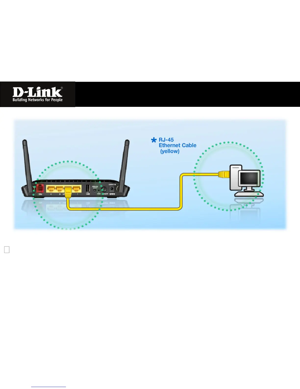 Connect the Ethernet LAN Cable to any (yellow) port on the Router