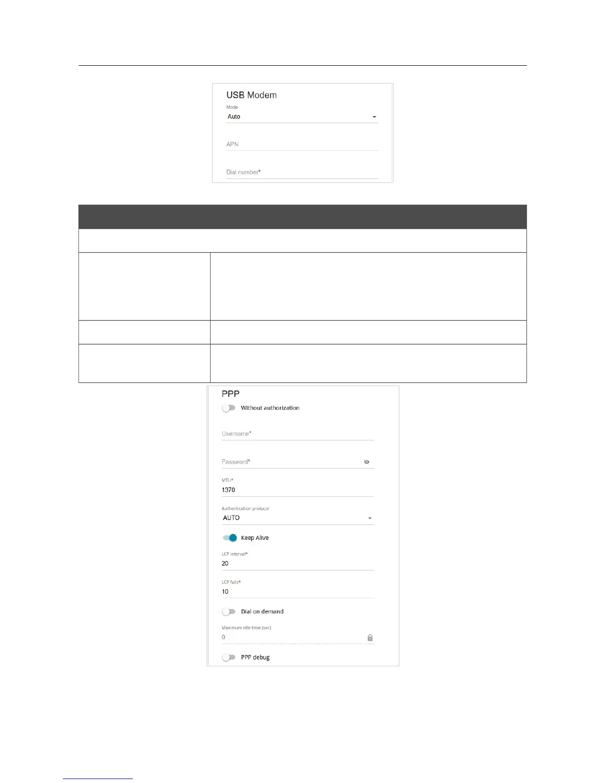 Figure 81. The page for creating a new 3G connection. The PPP section.
