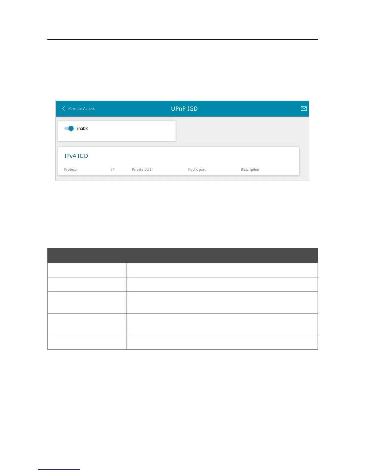 If you want to enable the UPnP IGD protocol in the router, move the Enable switch to the right.