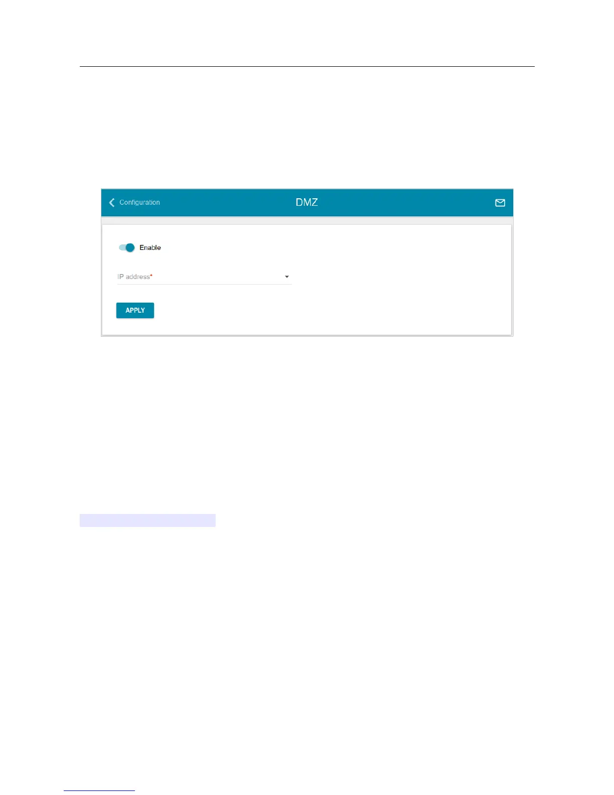 To disable the DMZ, move the Enable switch to the left and click the APPLY button.