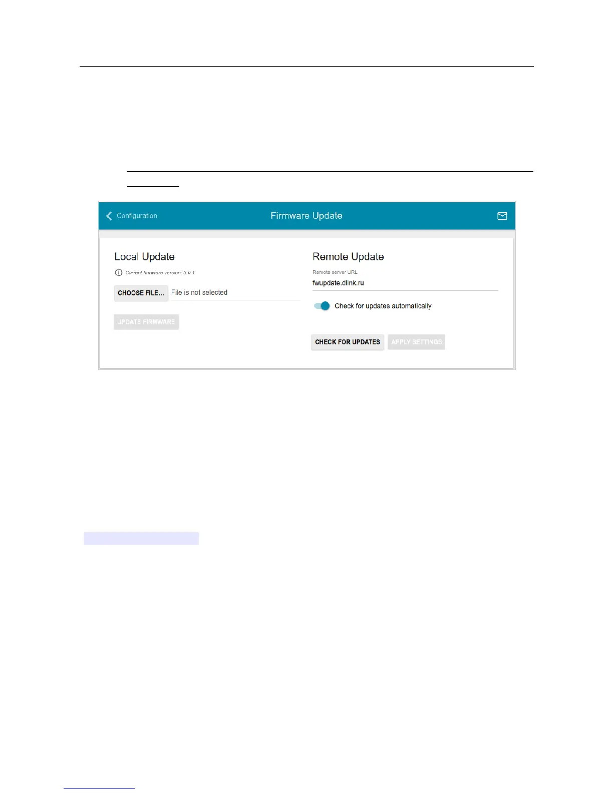 To enable the automatic check for firmware updates, in the Remote update section, move the