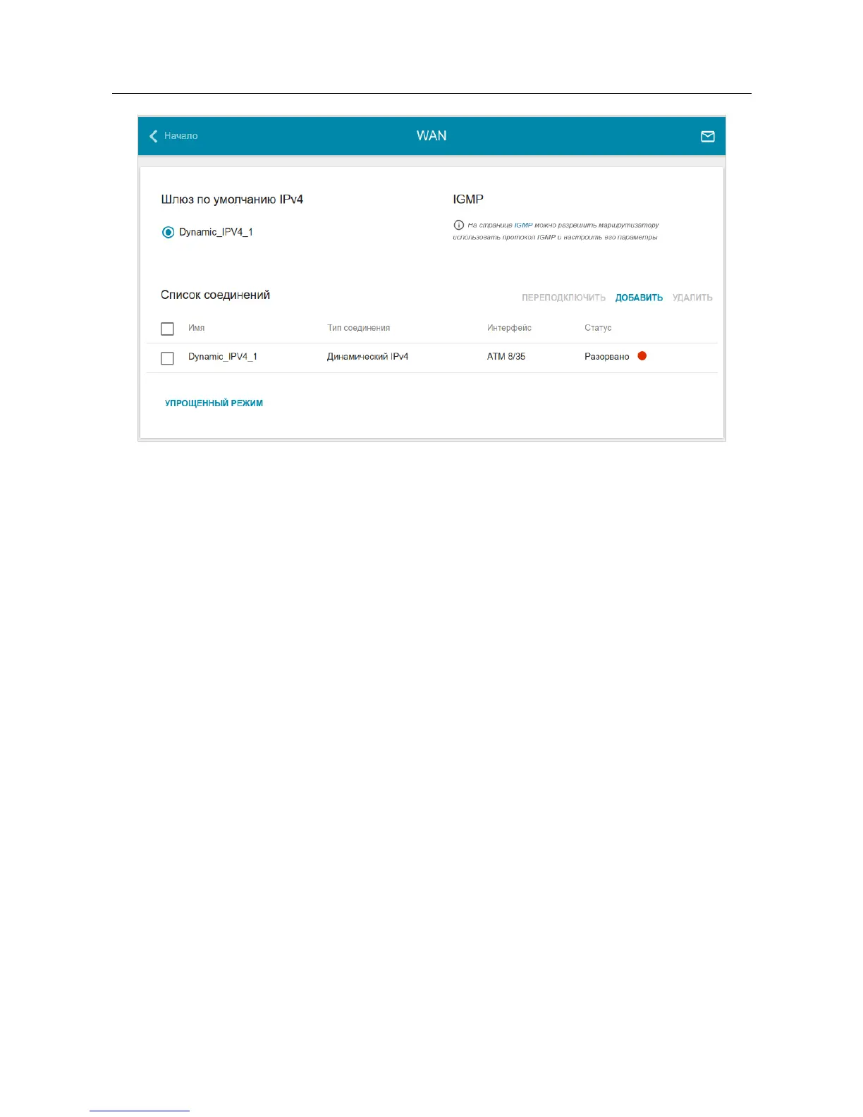 table. On the opened page, on the Basic tab, mandatory settings of this WAN connection will be