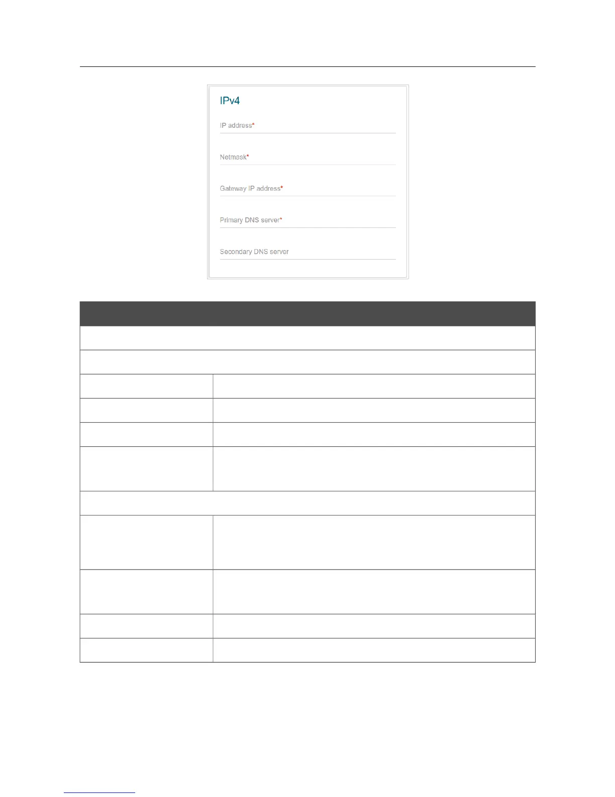 Figure 53. The page for creating a new Static IPv4 connection. The IPv4 section.