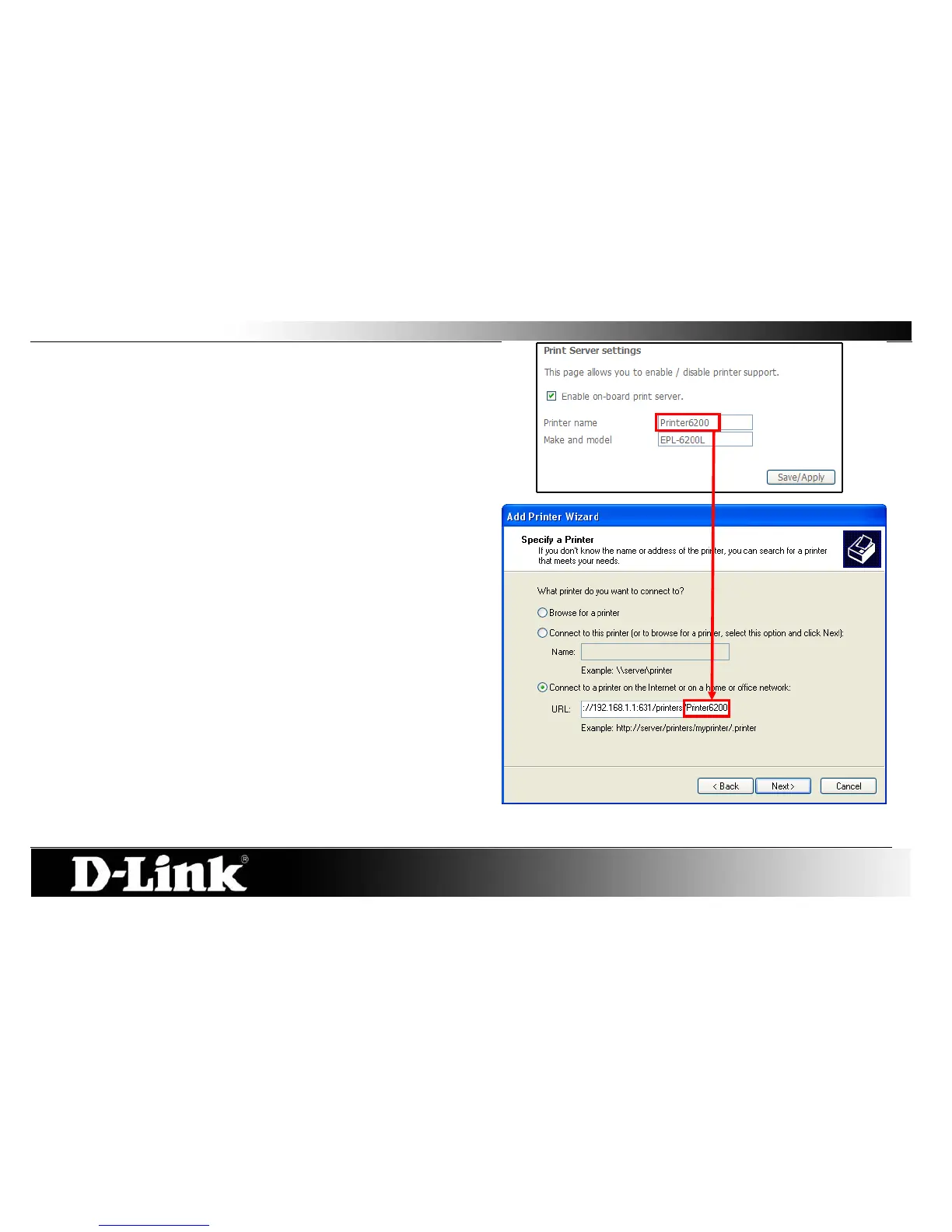 example here is http://192.168.1.1:631/printers/Printer6200). Make sure the