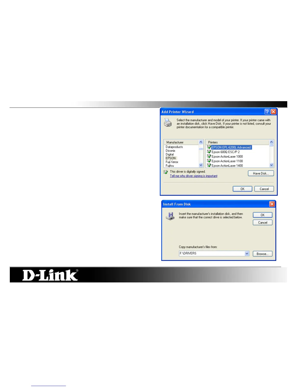 If the desired printer is not on the list, click Have Disk and insert the printer