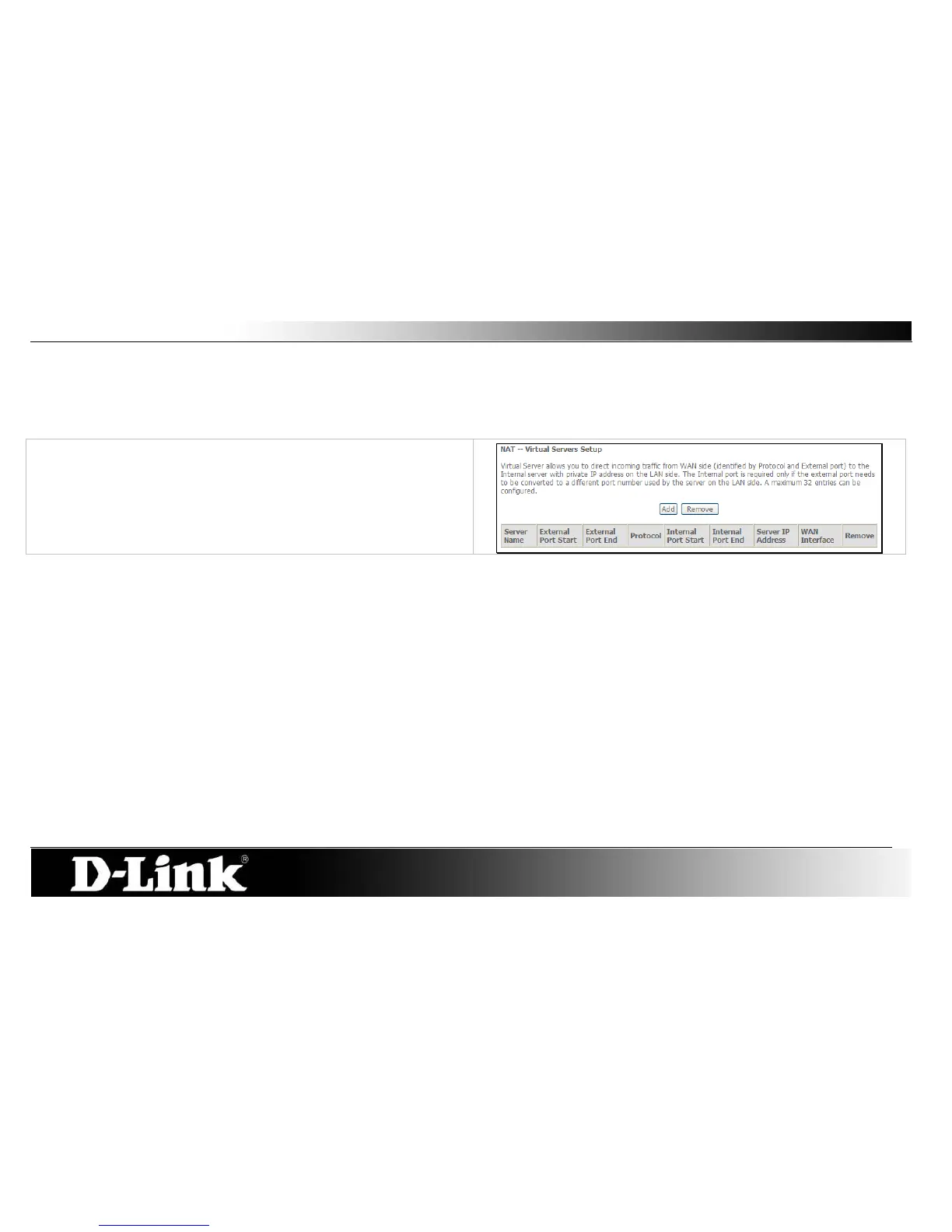 LAN side. The Internal port is required only if the external port needs to be converted to a different port number used by the server on the LAN side. The NAT