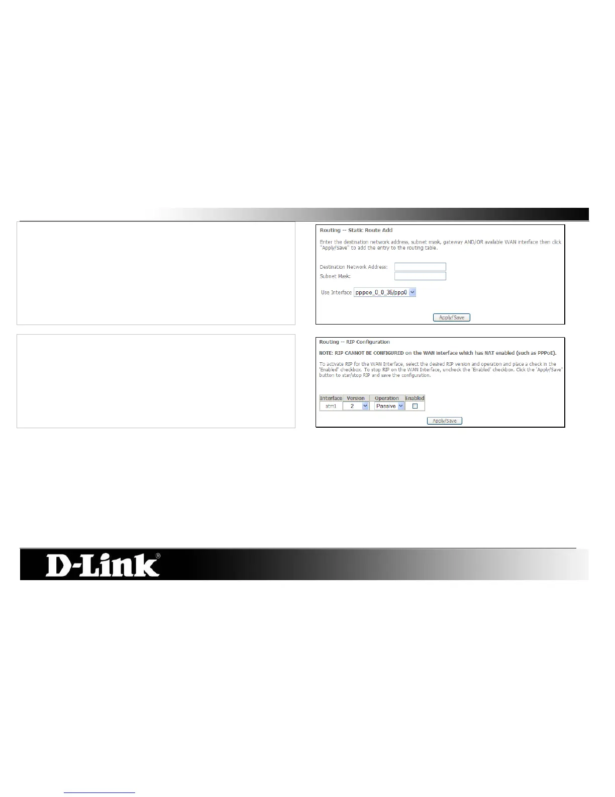 NOTE: RIP CANNOT BE CONFIGURED on the WAN interface which has