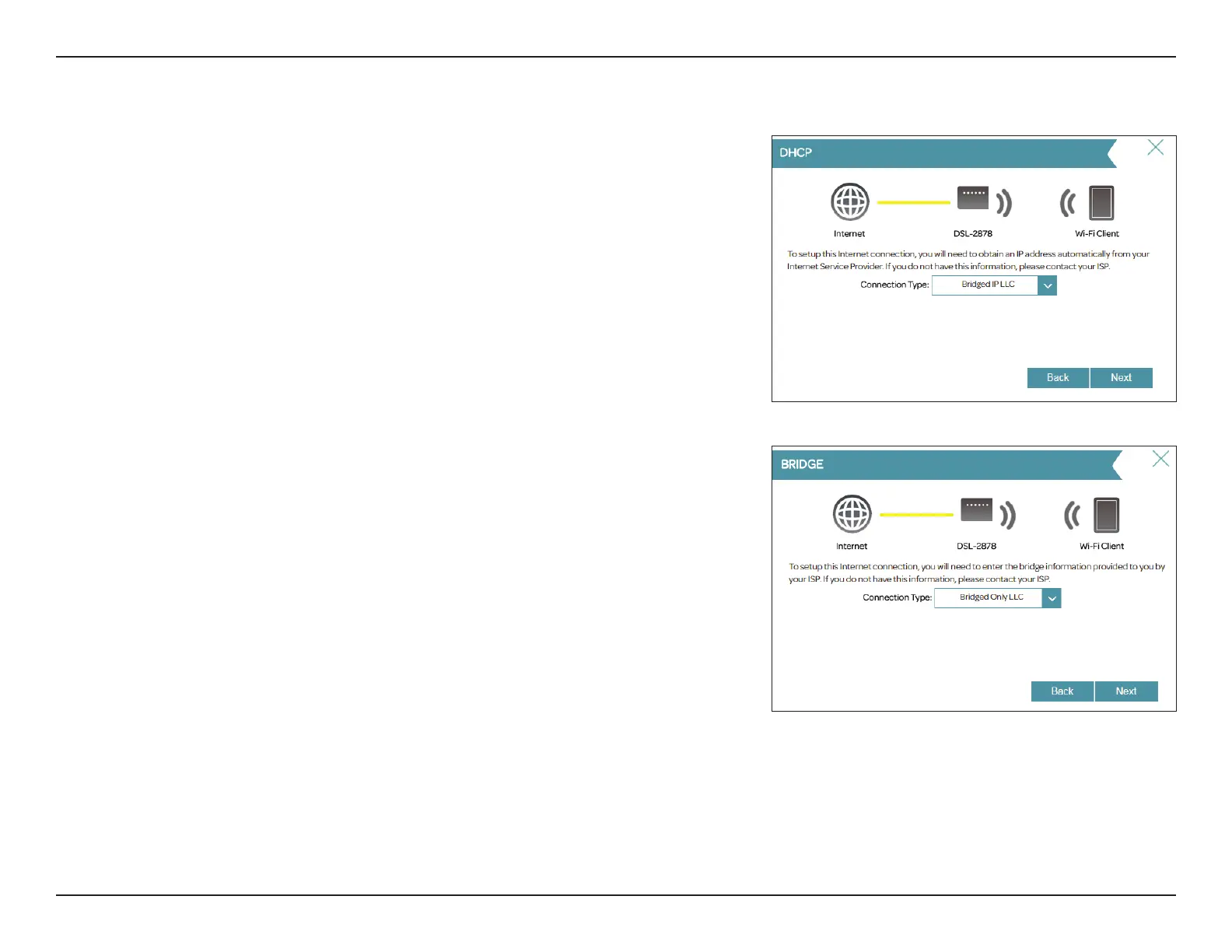 If you selected Bridge, choose the Connection Type if asked. Click Next to