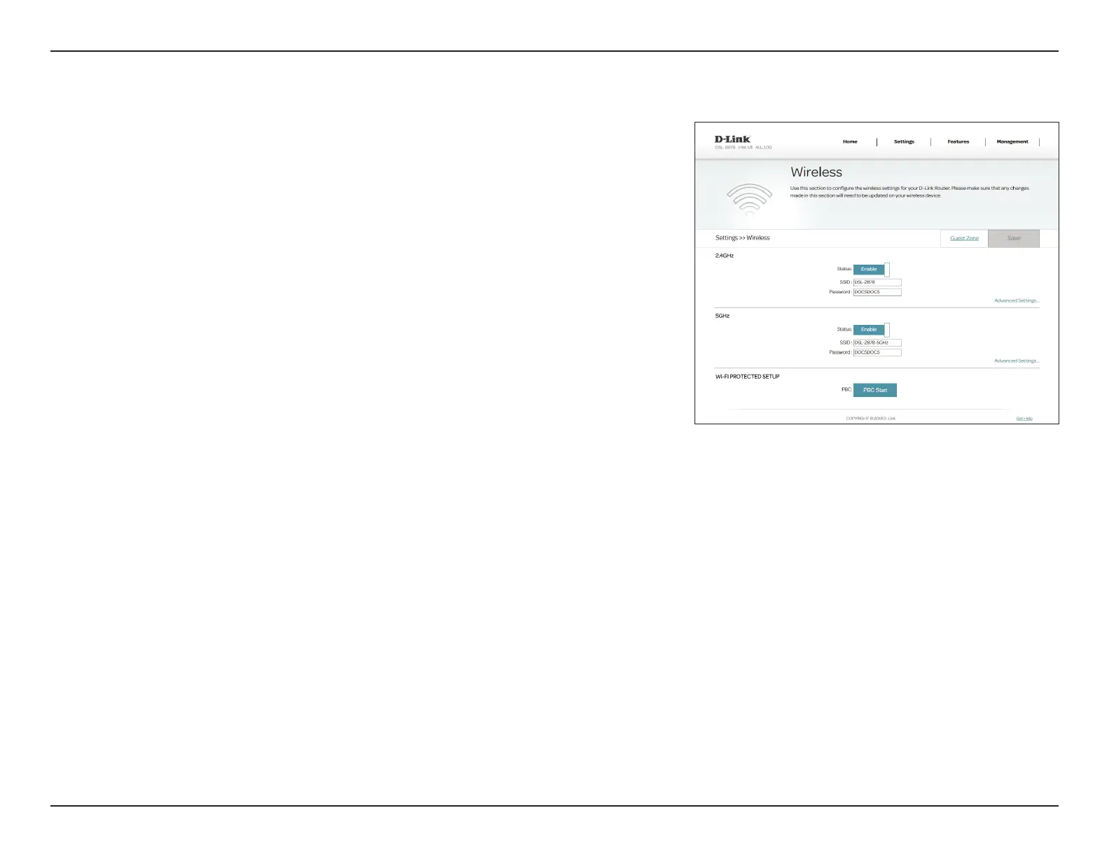 PBC Start: This triggers the WPS pairing process. Refer to WPS Button on page
