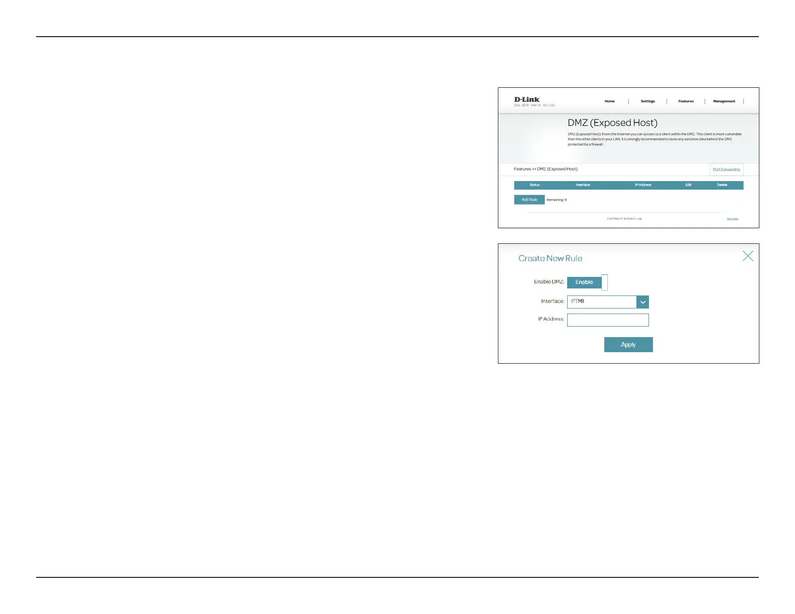 place up to 8 devices in the DMZ. If you wish to remove a DMZ rule, click on its