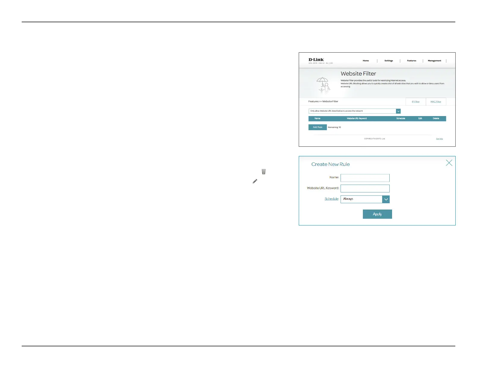 If you enable Web Filtering, click Add Rule to create a new Web Filtering