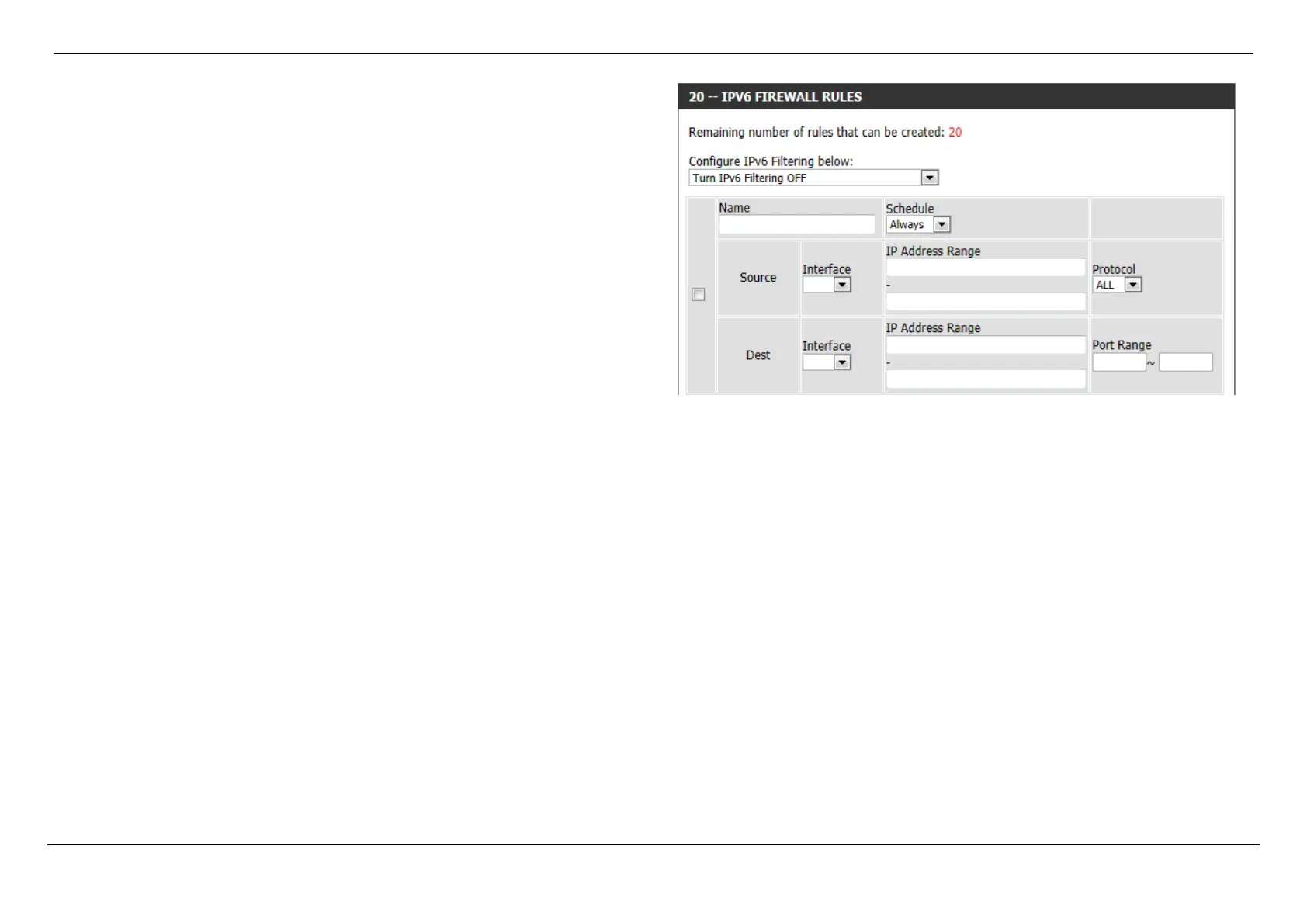 feature and allow the rules listed. Select the Turn IPv6 Filtering ON and