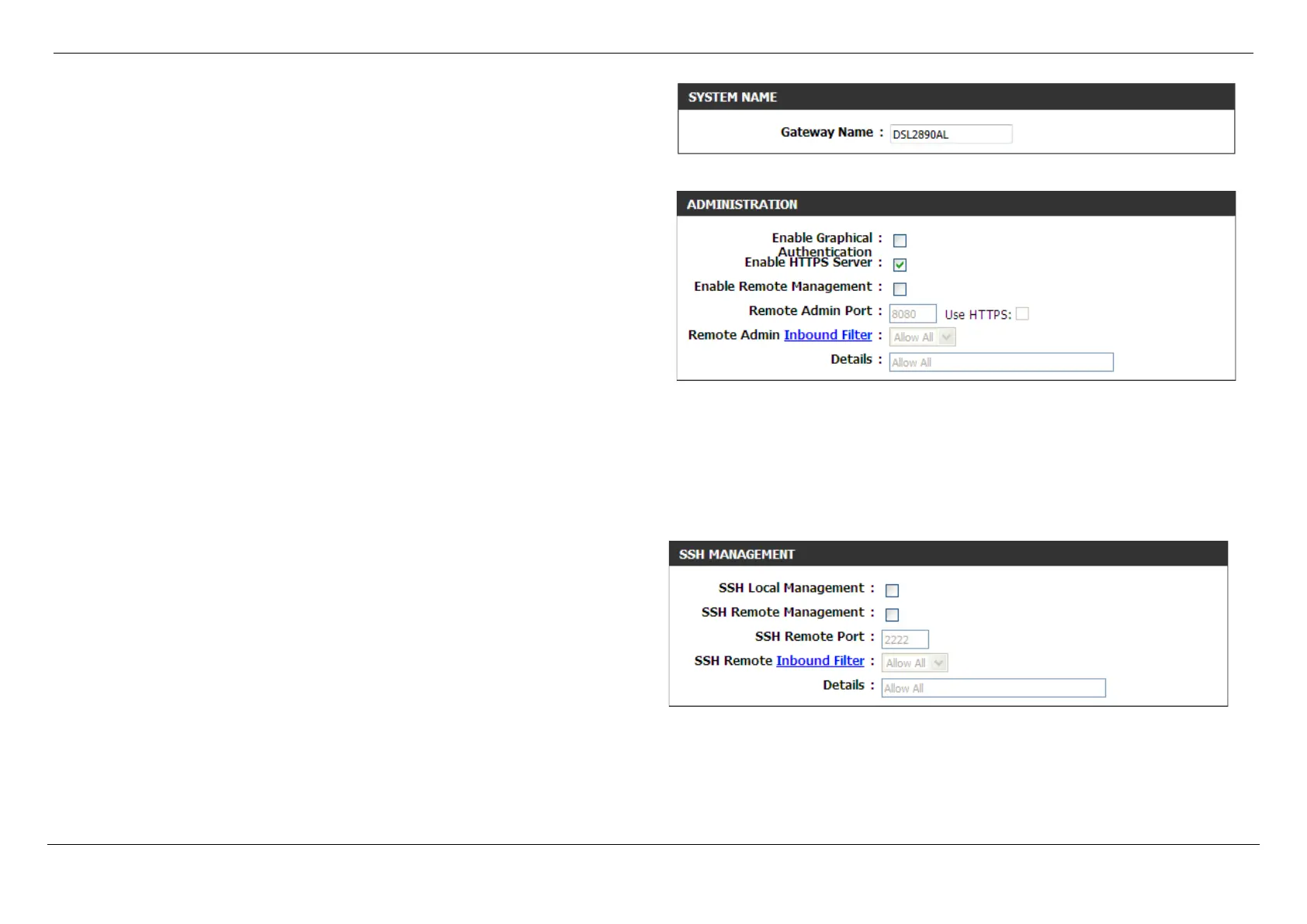 Remote Admin Inbound Filter: Select the remote administration inbound filter method here. Options to choose from are Allow All, Deny All, and Block.