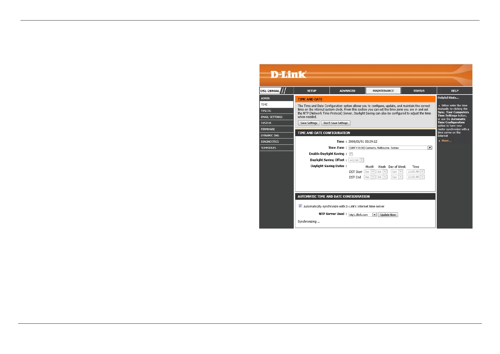 To access the Time page, click on the Maintenance menu link, at the top, and then click on the Time menu link, on the left.