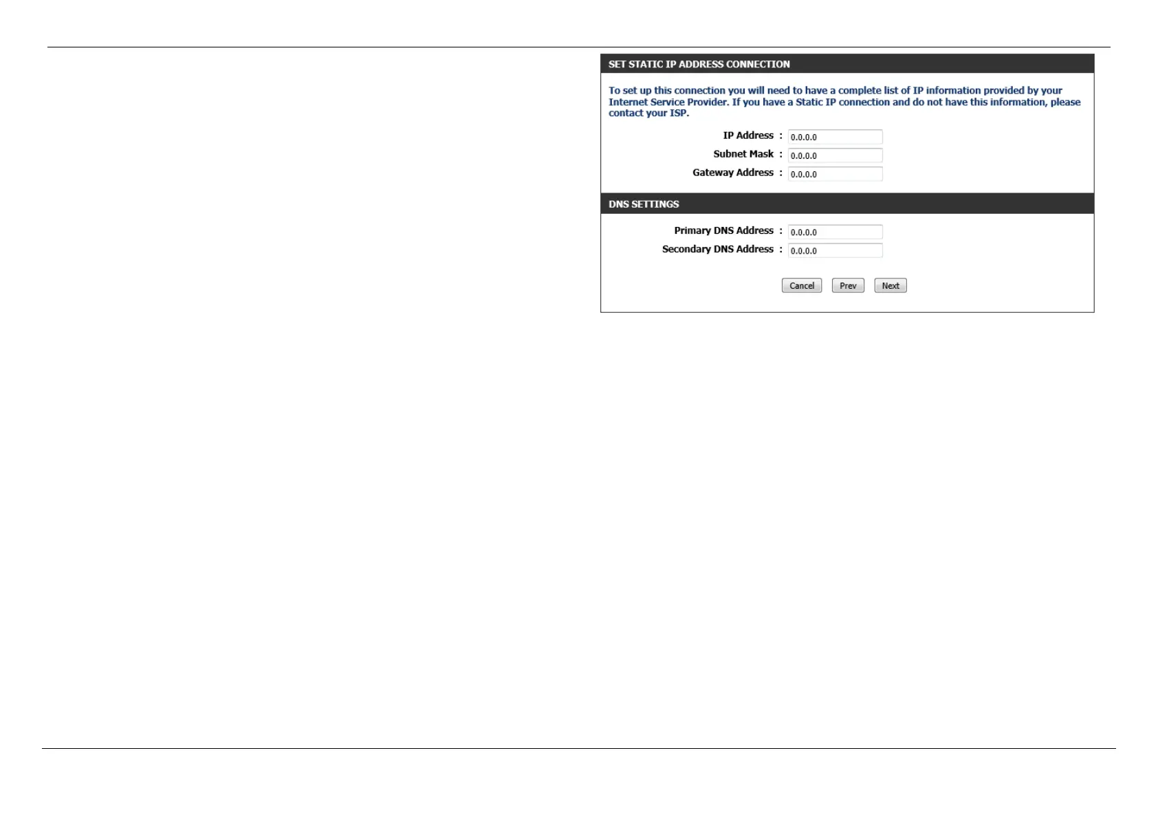 Secondary DNS Address: Enter the secondary DNS IP address here. This field is
