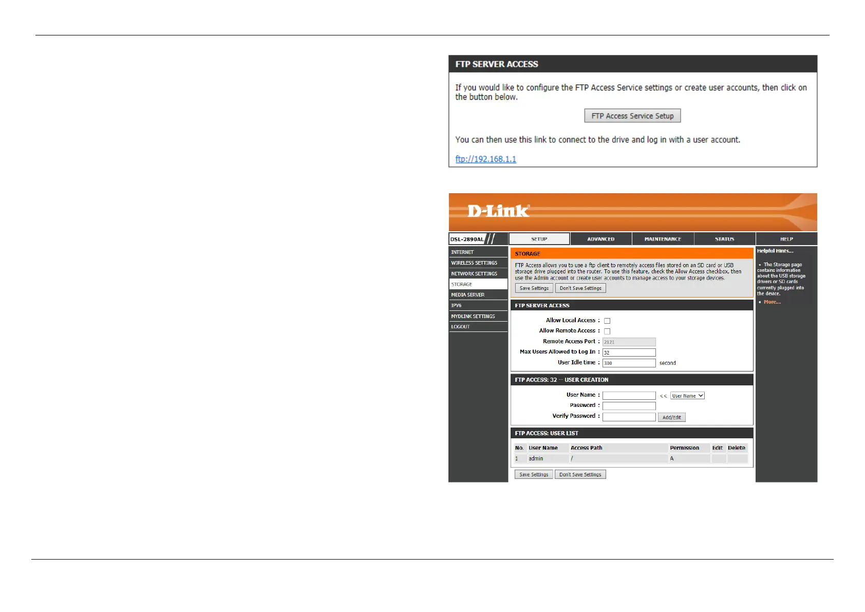 FTP access to the storage medium attached. Click the FTP Access Service Setup