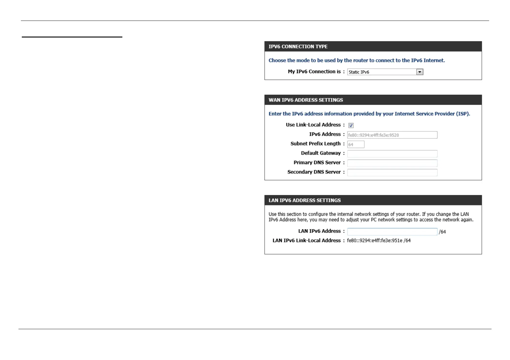 LAN IPv6 Link-Local Address: This field will display the LAN IPv6 link-local