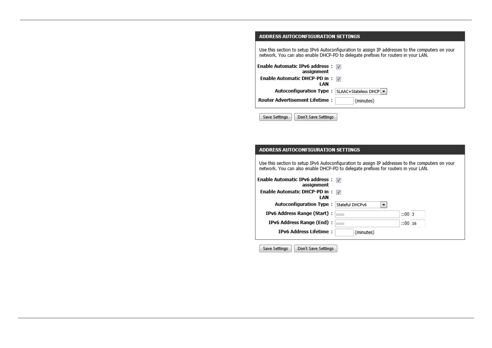 IPv6 Address Lifetime: After selecting Stateful DHCPv6 as the auto-configuration